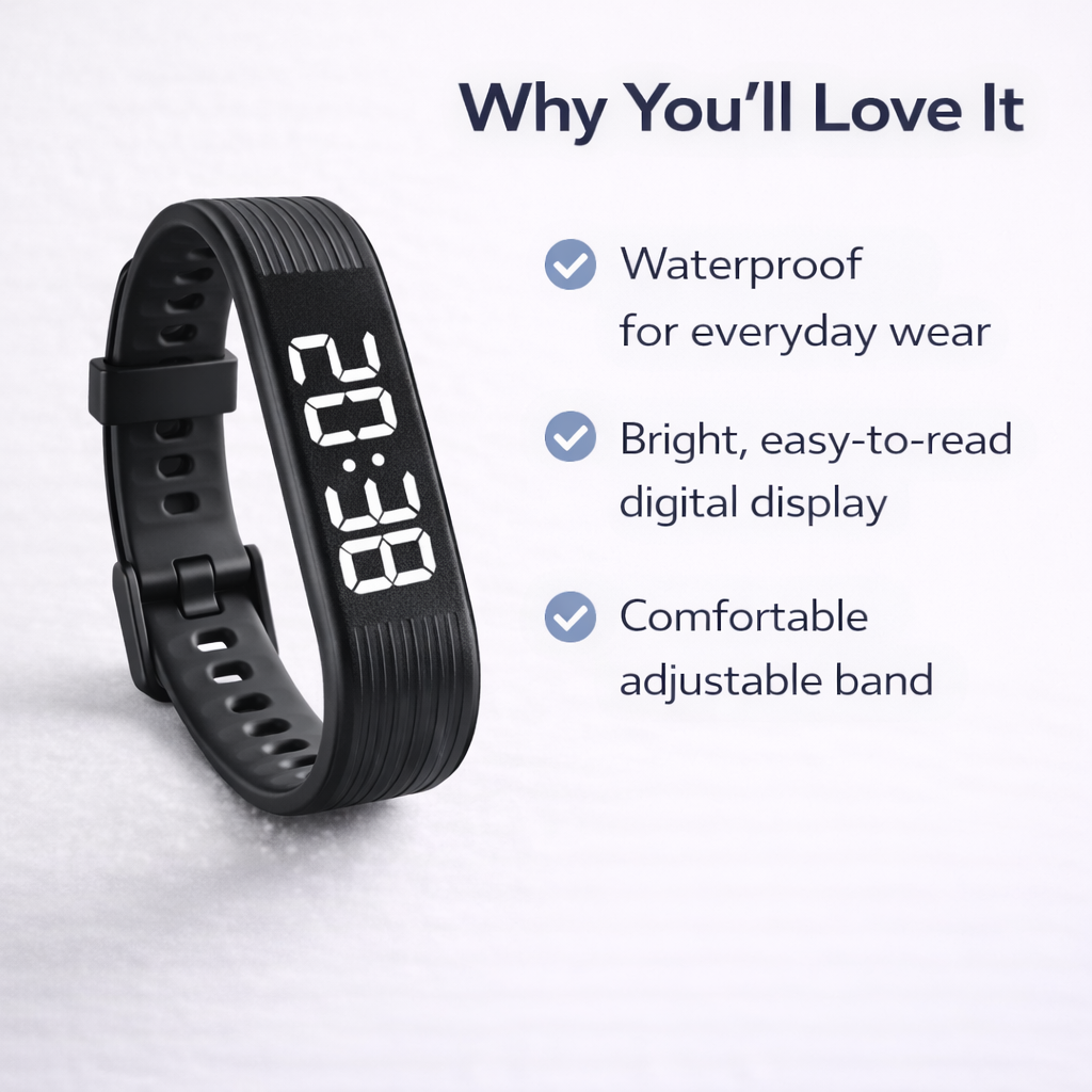 "I needed a silent way to wake up without disturbing my husband and newborn, and this watch has been perfect. It’s simple, works reliably, and the battery is still at 100%. Definitely worth it."